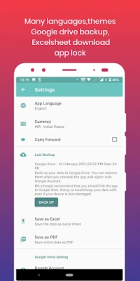 Store your data securely on your Google Drive—Day To Day Expenses does not store any personal information.