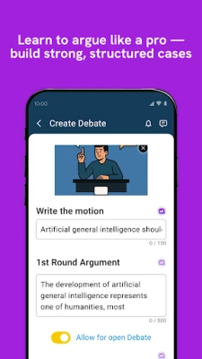 ● Structured Debates: Participate in debates with clear formats — opening, rebuttal, and closing.
