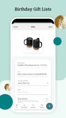 - Save and share wish lists for Christmas, other holidays, special occasions, or parties