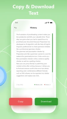 Our AI grammar checker app quickly scans your text and highlights all grammar, spelling, and punctuation mistakes in it. Simply correct the mistakes and download the results in PDF format for future use.