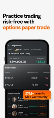 Moomoo, your smarter option in trading with $0 commission and 0 contract fees¹ for US residents, more flexibility, premium research, and intelligent AI tools. Join our 28M+ users** worldwide and improve your trading knowledge with papertrade, with advanced and intuitive app interface and tools designed for traders like you.