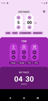 Enter the distance, time and let the app do the magic for you. That's it, very simple, but very useful for your training and races of 5 km, 10 km, half marathon, marathon or more.