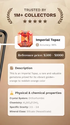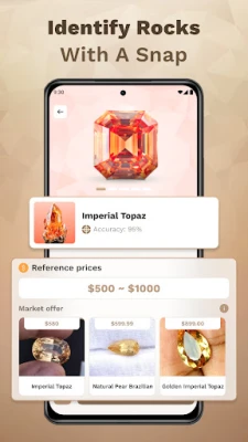 Save your rock hunting treasure, create your personal rock collection of rock identification gem identifier rock id stone id. Now you can record your stories in stones and minerals, gemstones, crystals, gem identification app with the images you have taken. You will have your own rock collection with rock scanner gem identifier mineral identifier rock id what crystal is this?
