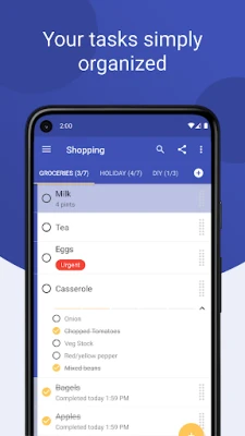 Set due dates and receive actionable notifications and alarms. Mark tasks as done or snooze them without opening the app. Quick, simple and easy to use.