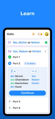 A learning process designed for you that is both easy and guided: You’ll feel like you’re learning more and more German every day. Every sentence, exercise, review, and reading has been carefully selected for you.